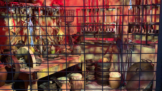 John: We walked into Docking Bay 7 Food and Cargo, but decided to skip it. The food looked great, but it was pretty pricey and I was trying to stretch my funds for some souvenirs. We decided to drop back into Ronto Roasters and eat there. We had the Ronto Wrap, which was a grilled sausage with a peppercorn sauce and slaw wrapped in a pita. It had a very mild kick, but was really good. I washed it down with a Trandoshan Ale. The true enjoyment of Ronto Roasters comes from the set decor. As you check out the area, the main set piece has a droid operating the grill. However, this “grill” is a re-purposed podracer engine. Star Wars fans will recognize this droid, too. He’s the “torture droid” from Jabba’s palace, who can be found branding the feet of a screaming power droid in Return of the Jedi. All told, this spot was very enjoyable.